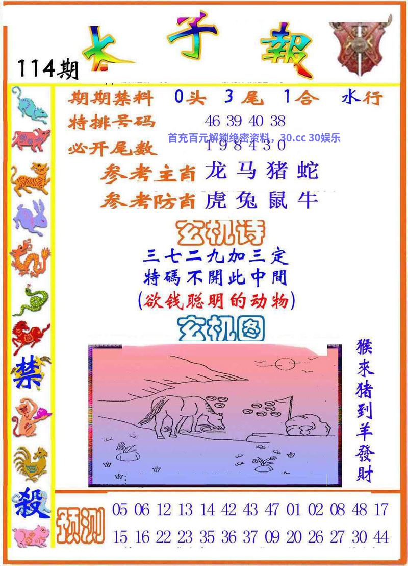 114期:三七二九加三定,特碼不開此中間 解:三七二九加三定解单数生肖兔牛猪鸡羊蛇 综合生肖:羊鼠兔龙虎猪 综合号码:11.23.18.30.03.15.02.14.04.16.19.31